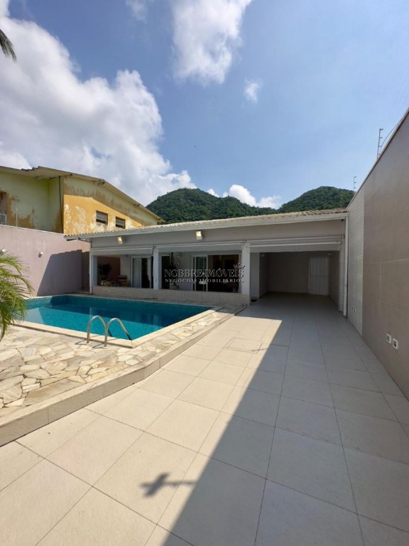 CASA MUITO BEM LOCALIZADA NO CANTO DO FORTE, 3 DORMITÓRIOS, SENDO 2 SUÍTES, 4 BANHEIROS, 2 SALAS, 6 VAGAS DE GARAGEM, COM PISCINA, CHURRASQUEIRA, QUARTOS E COZINHAS PLANEJADOS, À 500 MTS. DA PRAIA.