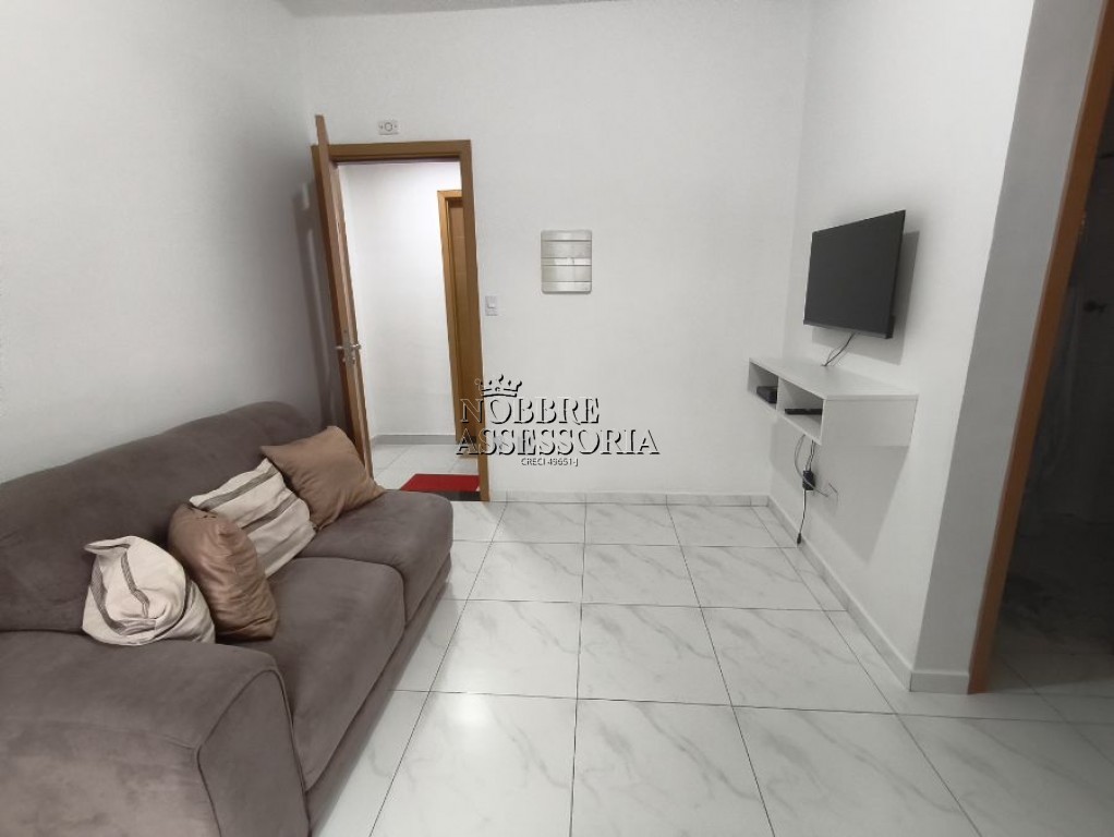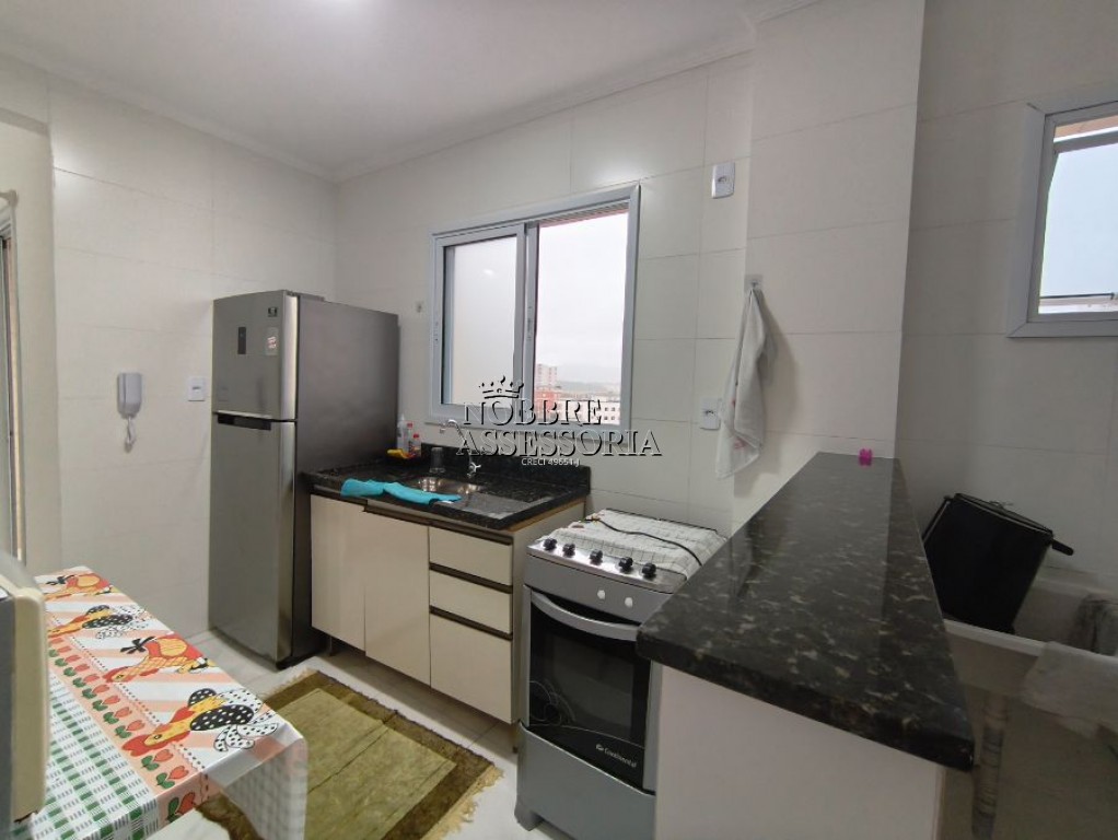 Apartamento mobiliado a poucos metros da praia, com 02 dormitórios, sala ampla, cozinha, varanda e área de serviço.