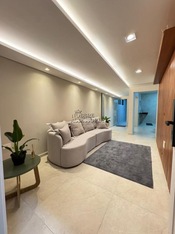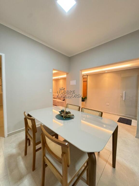 Possui 2 dormitórios (sendo 1 suíte), sala de TV mobiliada, sala de jantar mobiliada, cozinha, banheiro, área de serviço e churrasqueira.